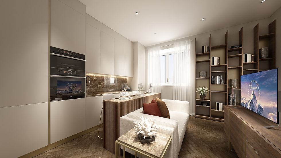 L’appartamento si distingue per la distribuzione equilibrata degli spazi: la zona giorno, luminosa e ben organizzata, accoglie un soggiorno dal carattere caldo e contemporaneo, affiancato da una cucina a vista dalle linee essenziali, ideale per vivere la quotidianità con naturale eleganza.